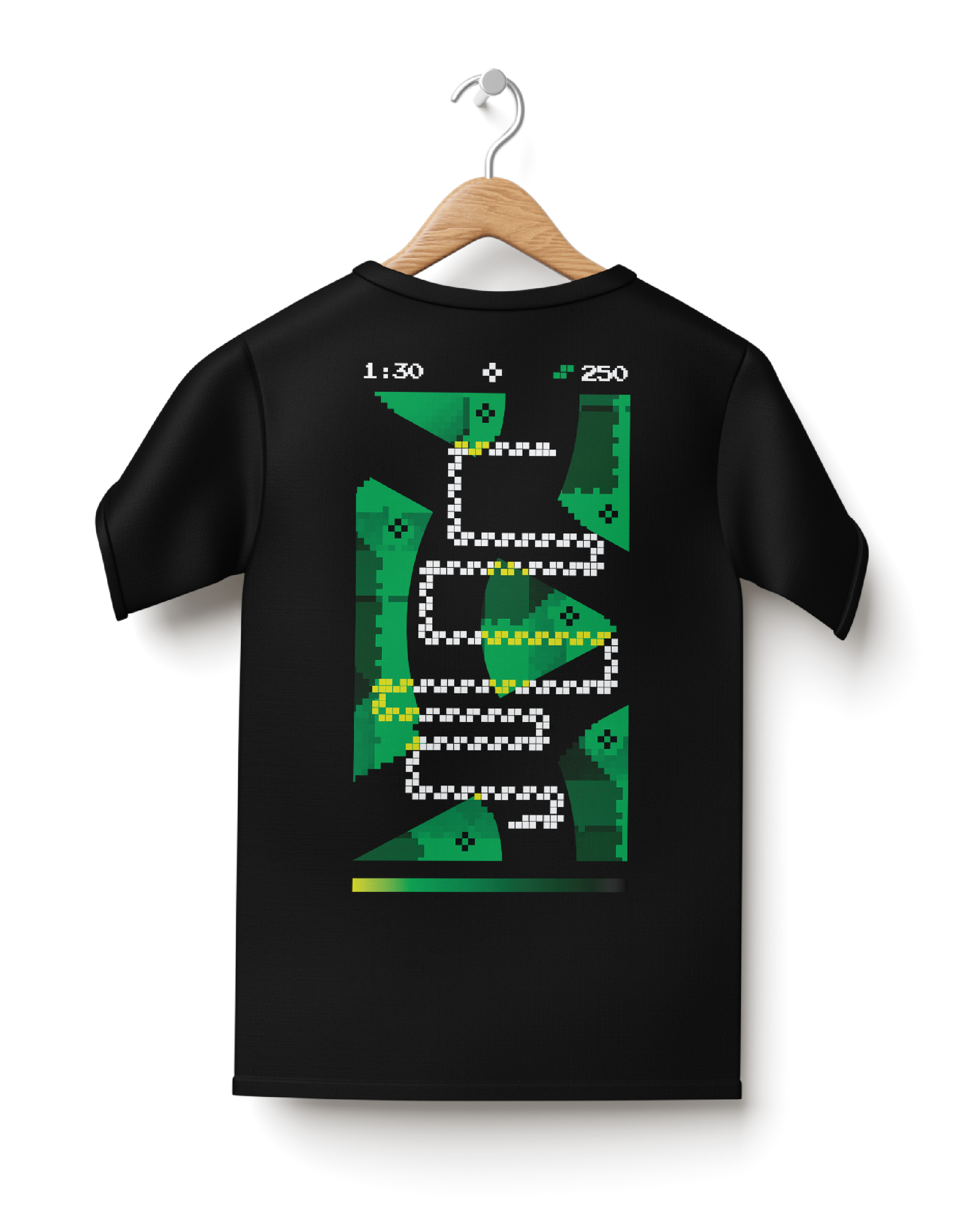 Inspired by one of the first digital games ever played, Nokia Snake celebrates the joy of nostalgia and the roots of digital interaction. This design pays tribute to the pixelated simplicity that shaped a generation — a reminder of when fun lived on a tiny screen and focus was the only skill required. It captures our love for timeless creativity, connecting past innovation with today’s digital artistry. All wearable art pieces are designed and embedded in Aruba.