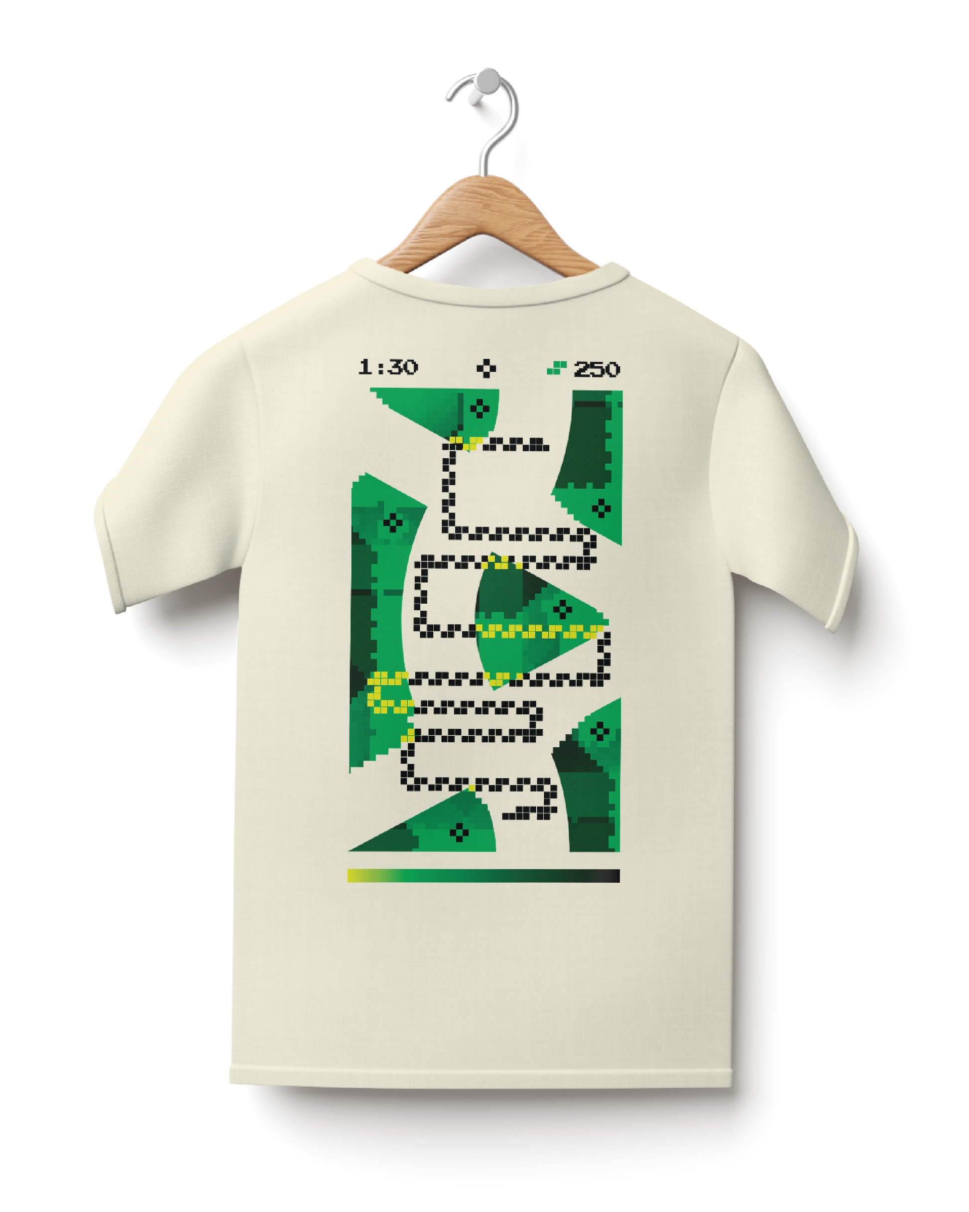 Inspired by one of the first digital games ever played, Nokia Snake celebrates the joy of nostalgia and the roots of digital interaction. This design pays tribute to the pixelated simplicity that shaped a generation — a reminder of when fun lived on a tiny screen and focus was the only skill required. It captures our love for timeless creativity, connecting past innovation with today’s digital artistry. All wearable art pieces are designed and embedded in Aruba.